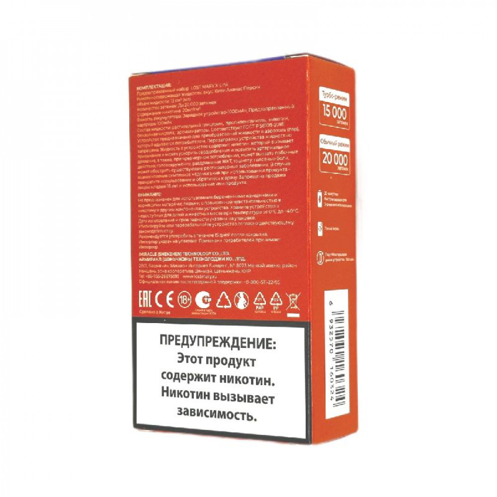Технические характеристики Набор Lost Mary X-Link 20000 - Киви Маракуйя Гуава