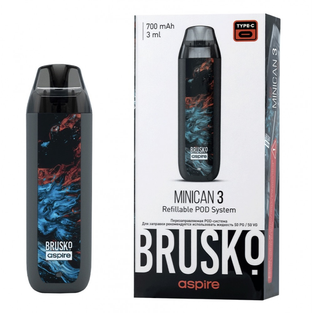 Перезаправляемая Под-Система Бруско Миникан 3 (Brusko Minican 3) 700 mah, Серый Флюид - купить в Камышлове